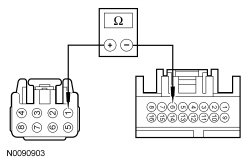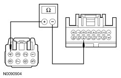 - Measure the resistance between LH rear window control switch C701-8, circuit GD133 (BK), harness side and ground.