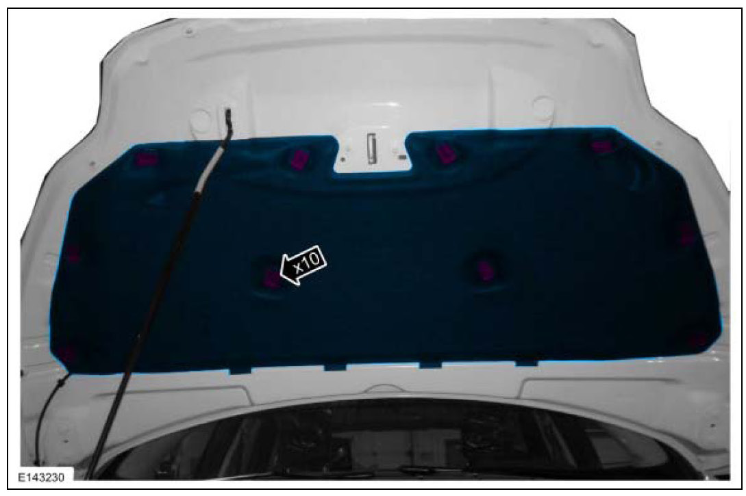 2. Remove the hood insulator pushpin retainers and the hood insulator.