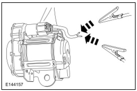 64. Deploy the safety belt anchor, buckle or retractor by touching the ends of the 2 wires of the jumper harness to the terminals of a 12-volt battery.