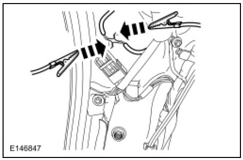 88. Deploy the deployable steering column by touching the ends of the 2 wires of the jumper harness to the terminals of a 12-volt battery.