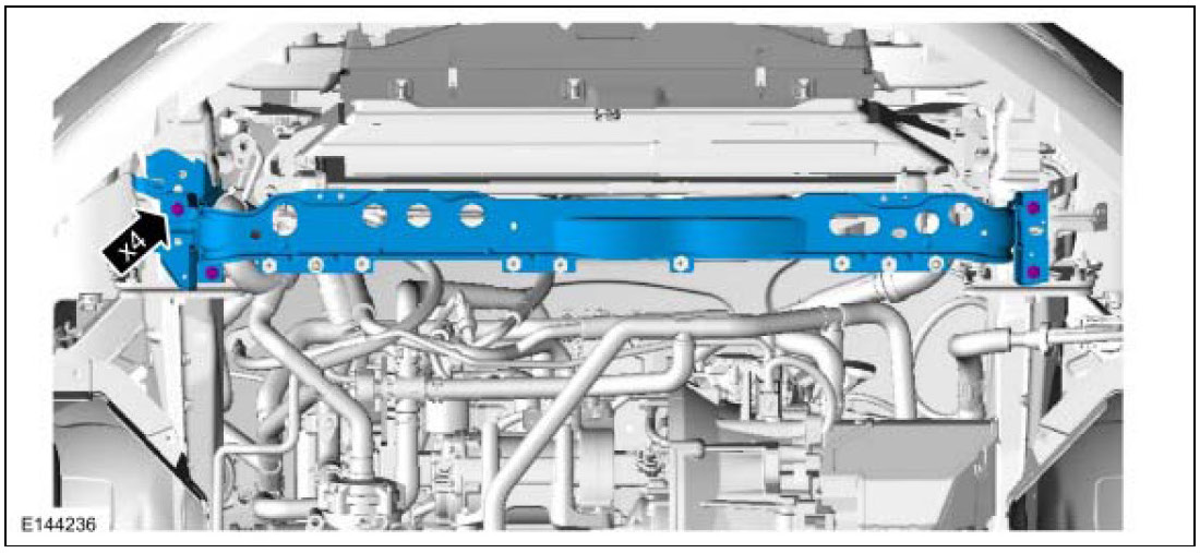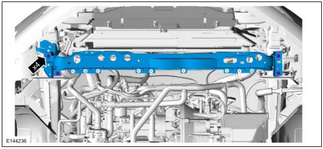 3. Tighten the upper radiator grille reinforcement bolts.