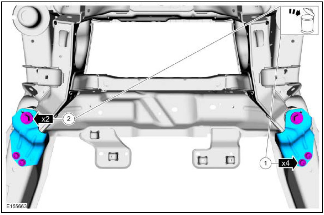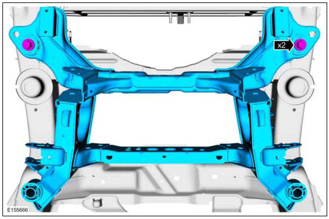 Special Tool(s): 502-002 (Alignment Pins, Subframe)