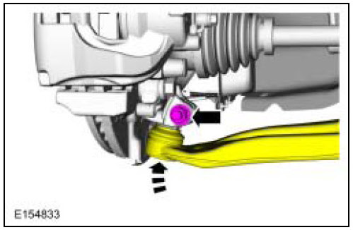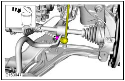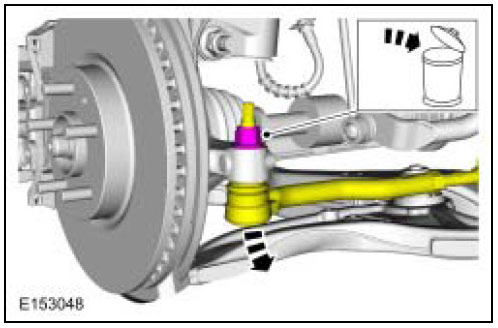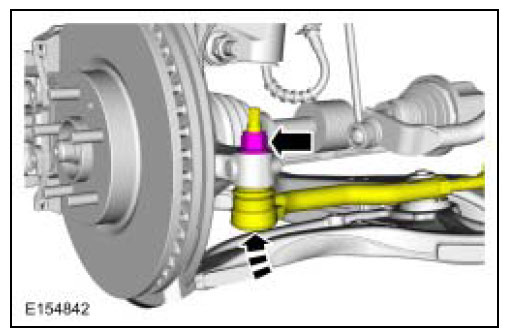 - Use care when releasing the lower arm and wheel knuckle into the resting position or damage to the ball joint seal may occur.