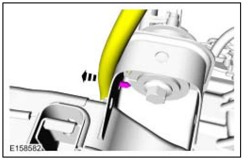 2. NOTICE: Disconnect the battery ground cable anytime the steering gear is being serviced or damage to the steering gear internal power relay may occur resulting in steering gear replacement.