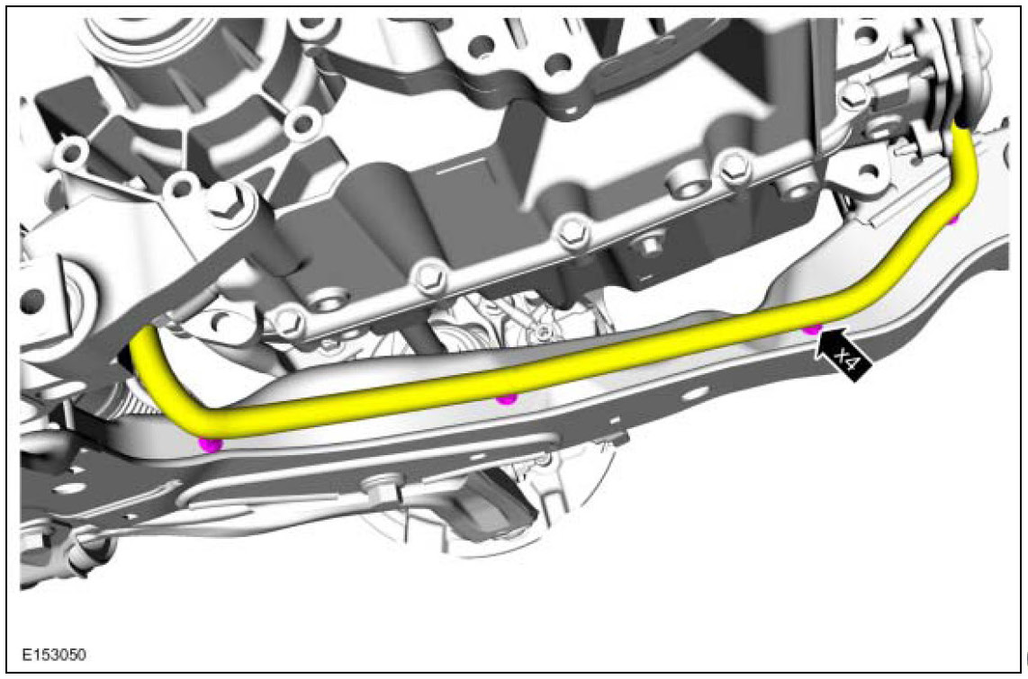 5. NOTE: While tightening the subframe bolts, make sure the front subframe does not move.