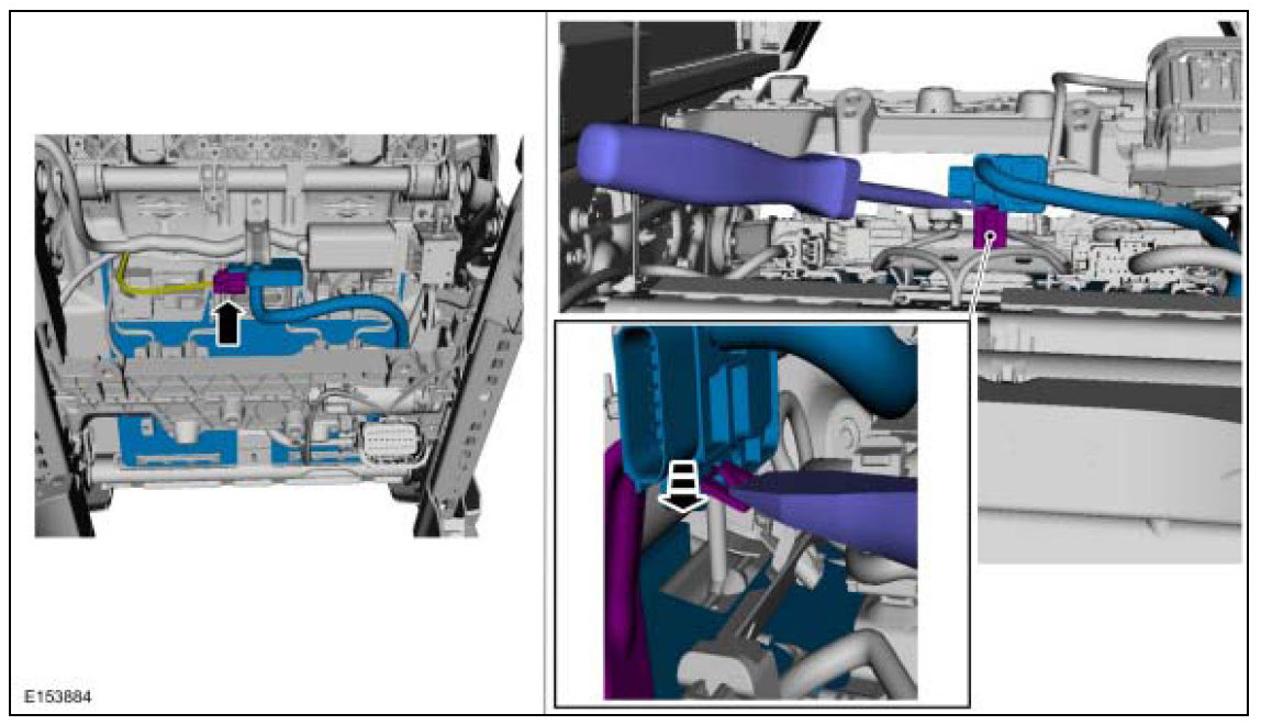 5. If the first system reset attempt was not successful, carry out a thorough visual inspection of the OCS connector and wiring for damage, pressure sensor hose for kinks and or damage, and seat-related wiring harness and body wiring harness terminals and connectors for damage. Repair any concerns found and proceed to the next step.