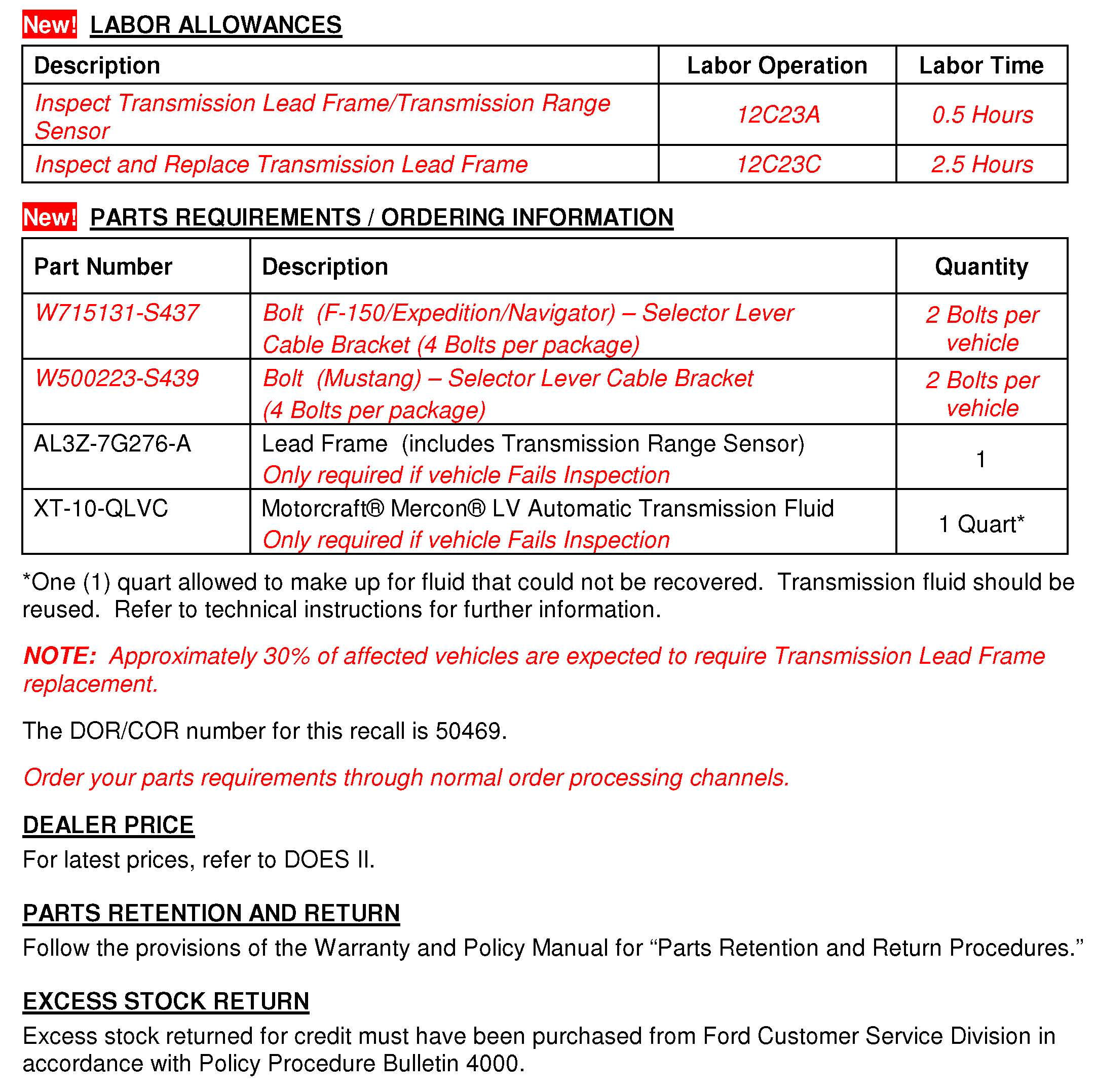 Recall - A/T Range Sensor Inspection/Replacement