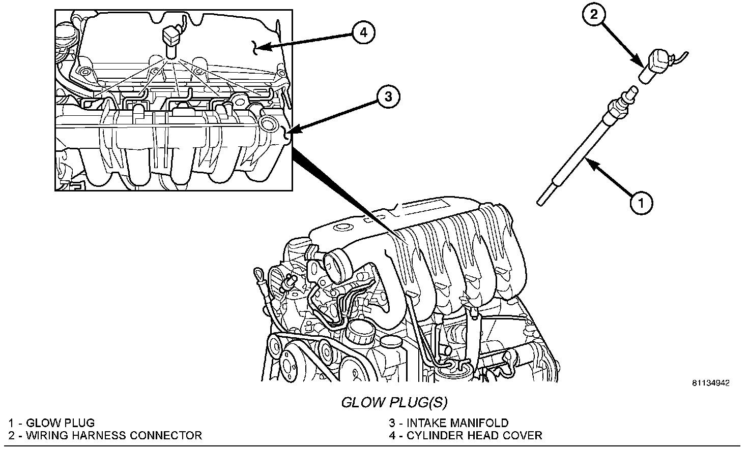 2. Use special tool #9286 pliers to unplug the glow plug wiring harness connector(s).