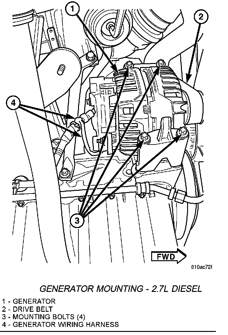 3. Install 4 generator mounting bolts. Refer to Torque Specifications.