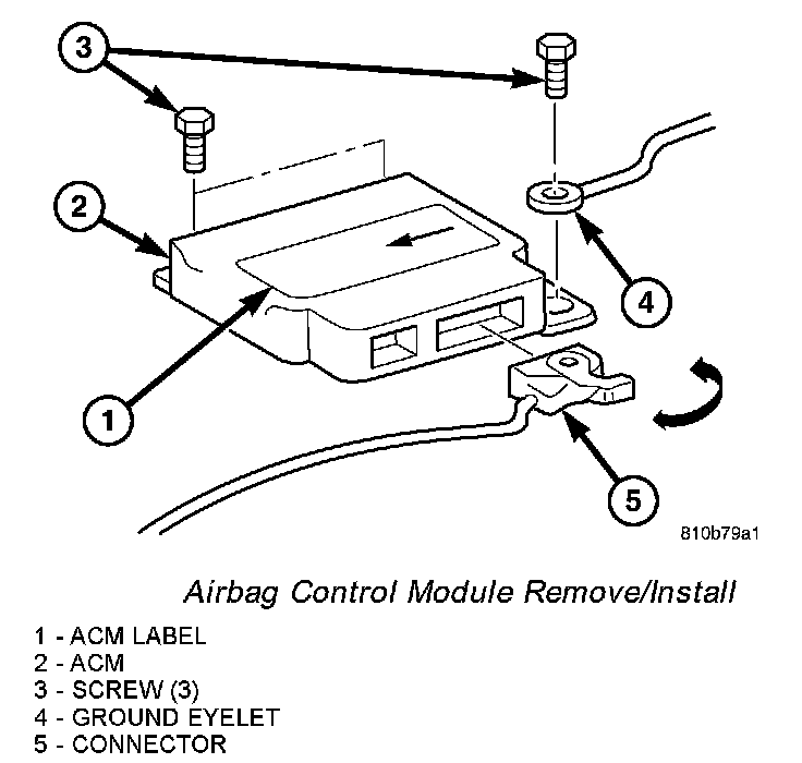 NOTE: If the Airbag Control Module (ACM) has been replaced with a new unit, it will be necessary to initialize the new ACM. In order to function properly, the ACM must be programmed for the correct standard and optional supplemental restraint system components installed in the vehicle. To initialize the ACM, a DRBIII(R) scan tool is required. Refer to the appropriate diagnostic information.