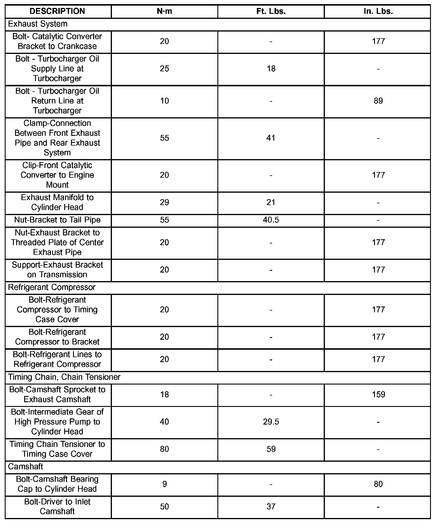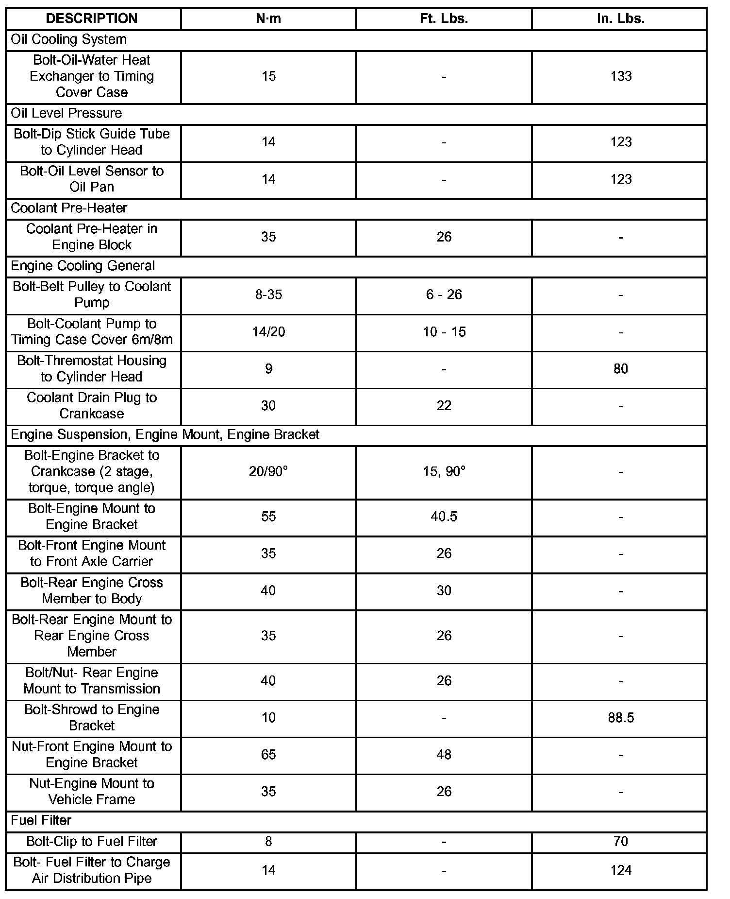 Engine Torque Specifications