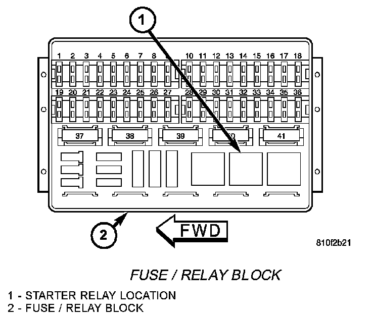 The starter relay is located in the Fuse/Relay Block. The Fuse/Relay Block is located under, and to the left side of the drivers seat. See Fuse/Relay Block cover for relay identification and location.