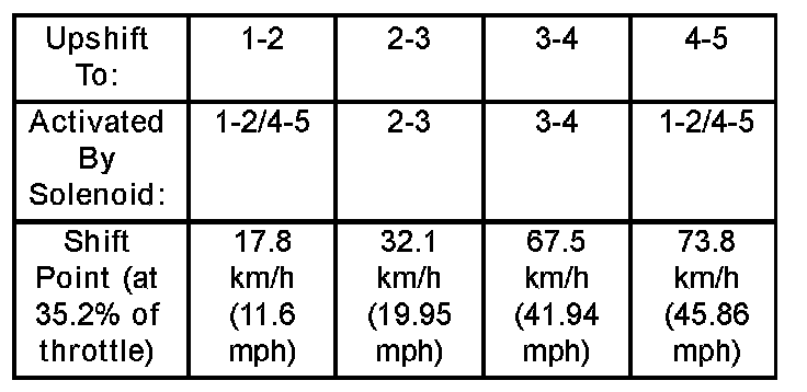 Based on how aggressive the driver is, the TCM moves up the shift so that the present gear is held a little longer before the next upshift. If the driving style is still aggressive, the shift point is modified up to ten steps. If the driving returns to normal, then the shift point modification also returns to the base position.