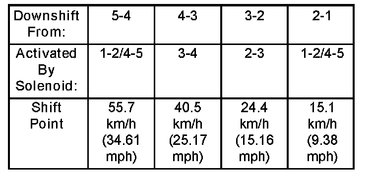 4. Decelerating downshift, which is accomplished by coasting down. As the speed of the vehicle decreases, the transmission downshifts.