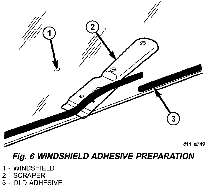1. Level old bead of windshield adhesive to a thickness of approximately 1 mm (0.04 in.) and remove loose adhesive. (Fig. 6)