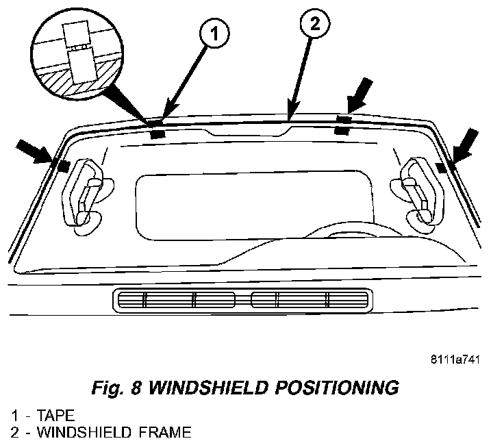 3. Lift windshield into place in the center of the windshield opening and use the tape as a guide to aid installation of the windshield into the center of the cutout.