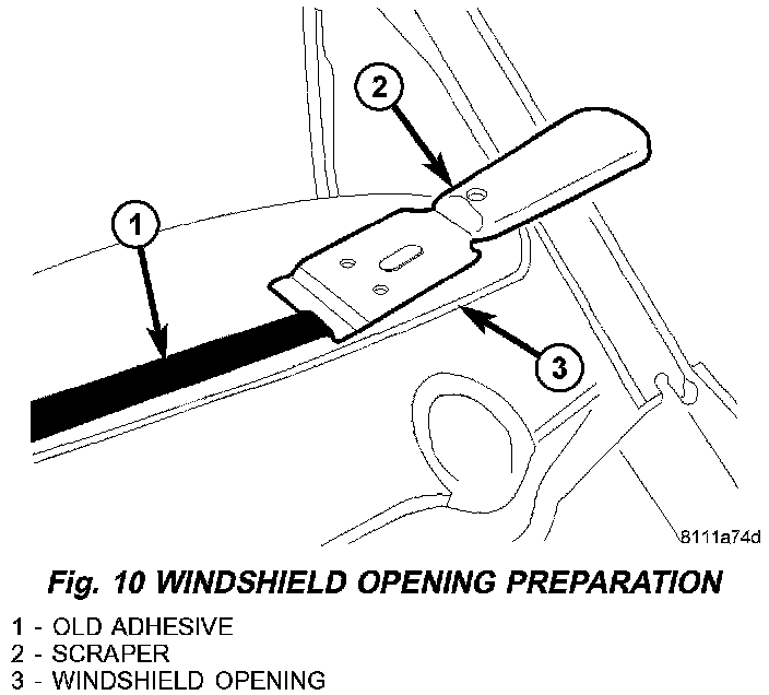 2. Level old bead of windshield opening adhesive to a thickness of approximately 1 mm (0.04 in.) and remove loose adhesive. (Fig. 10)