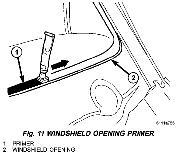 8. Apply primer to gluing surface at windshield seal. (Fig. 9)