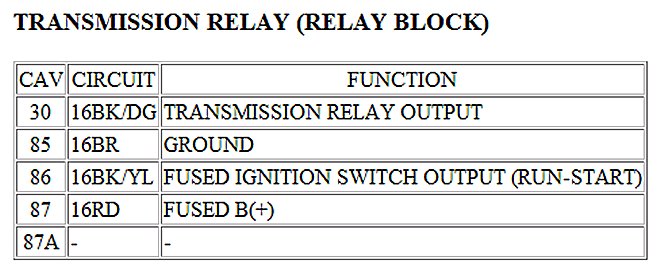 Transmission Control System Relay, A/T