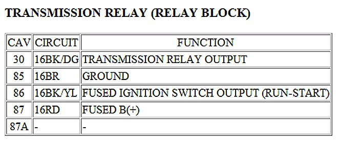 Transmission Control System Relay, A/T