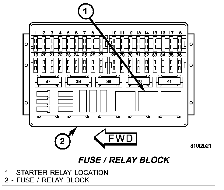 The starter relay is located in the Fuse/Relay Block. The Fuse/Relay Block is located under, and to the left side of the drivers seat. See Fuse/Relay Block cover for relay identification and location.