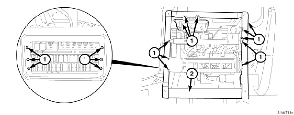 1. Position the Fuse/Relay Block #2 into the driver seat riser (2).