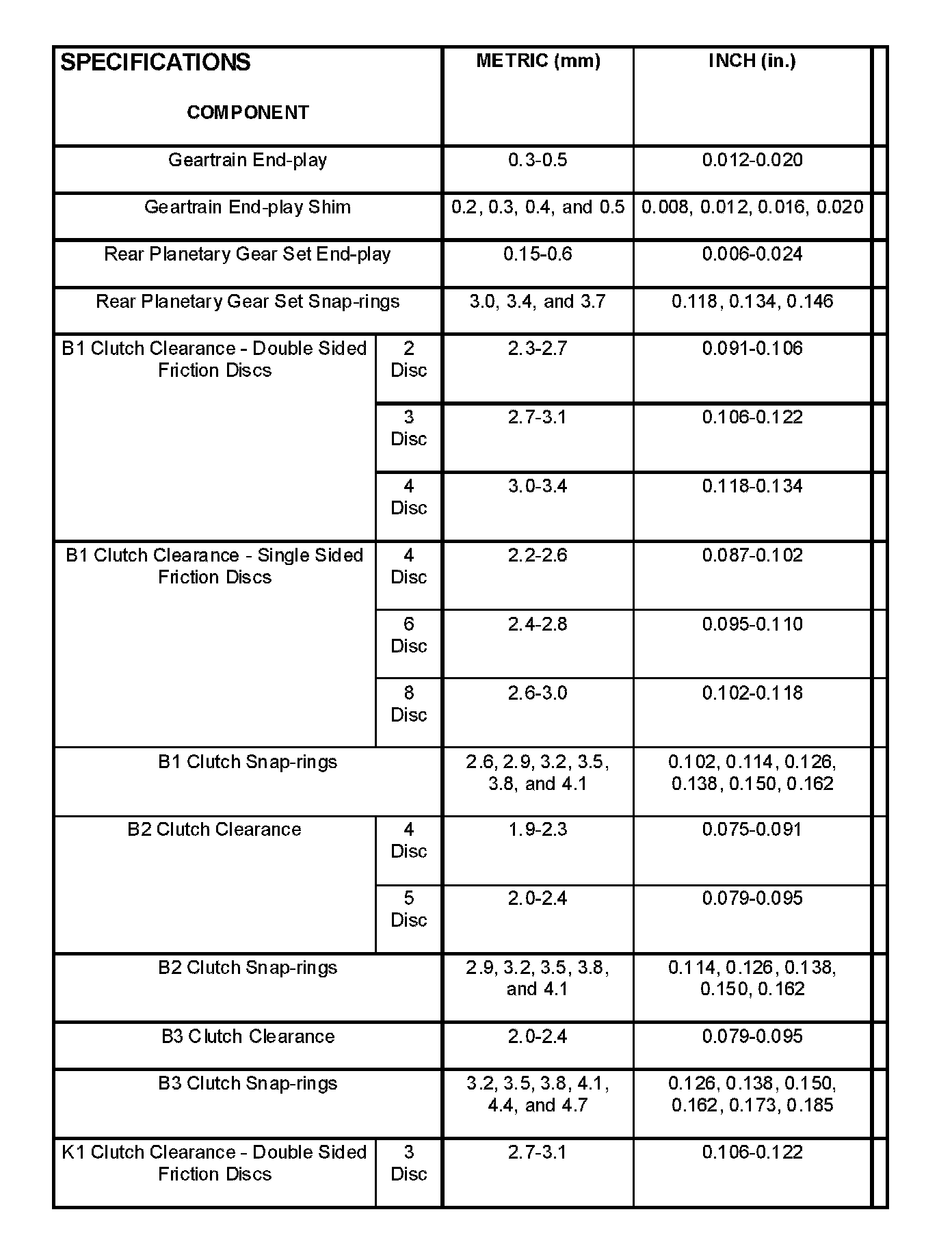 SPECIFICATIONS - NAG1 AUTOMATIC TRANSMISSION