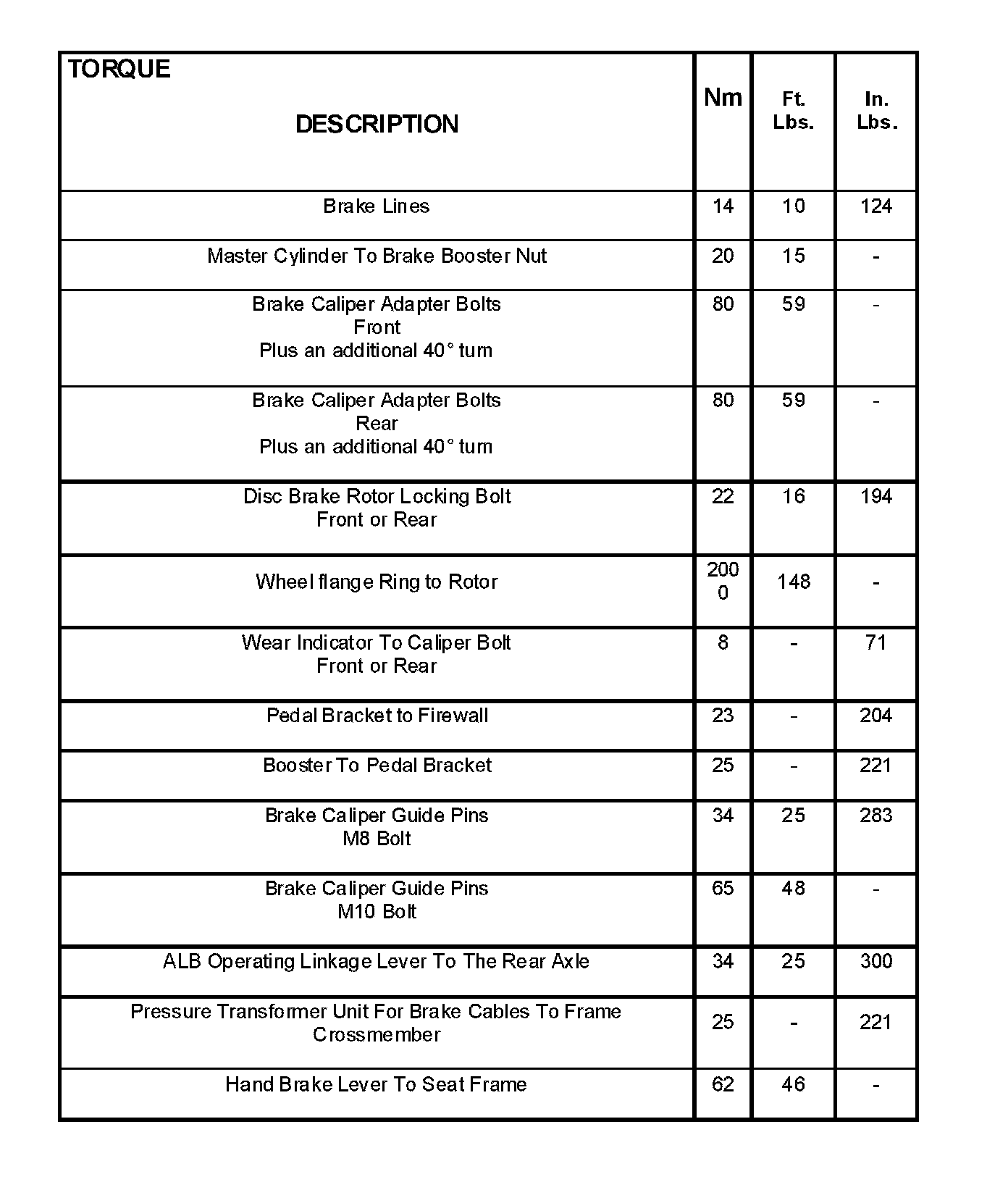 Torque Specifications