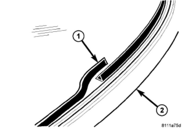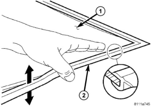 CAUTION: Never moisten windshield seal with lubricants to facilitate installation.