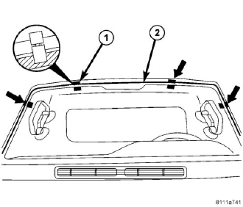 CAUTION: Roll down the left and right front door glass and open the rear glass slider (if available) before installing windshield to avoid pressurizing the passenger compartment if a door is slammed before urethane is cured. Water leaks can result.