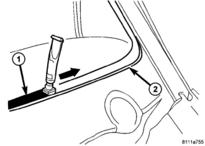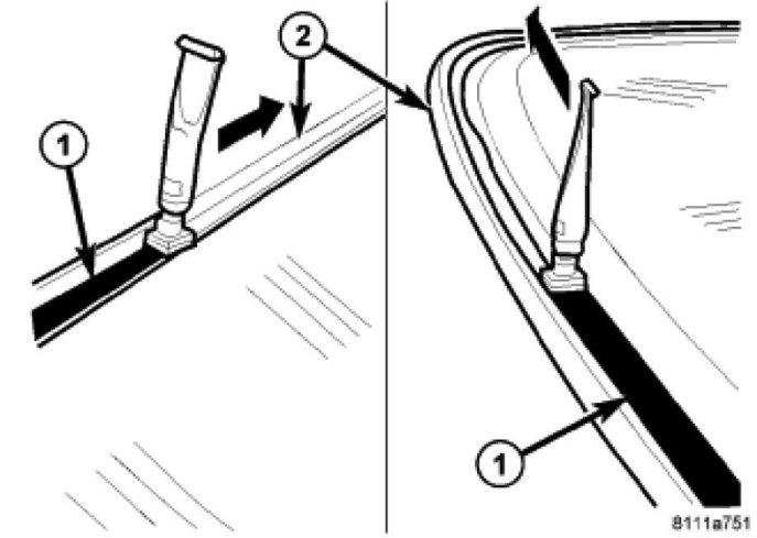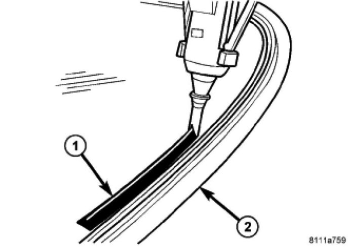1. Apply bead of glue with a triangular nozzle directly to the windshield seal starting at bottom in center of windshield.