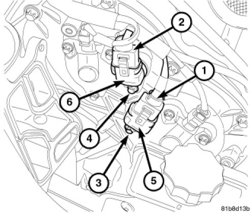 2. Install the intake camshaft position sensor (5) so that it is fully seated on the mounting surface.