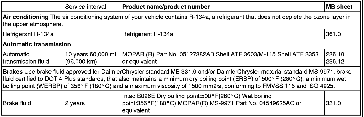 The following oils have been determined to meet the DaimlerChrysler requirements as shown below: