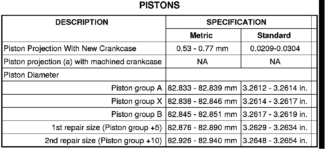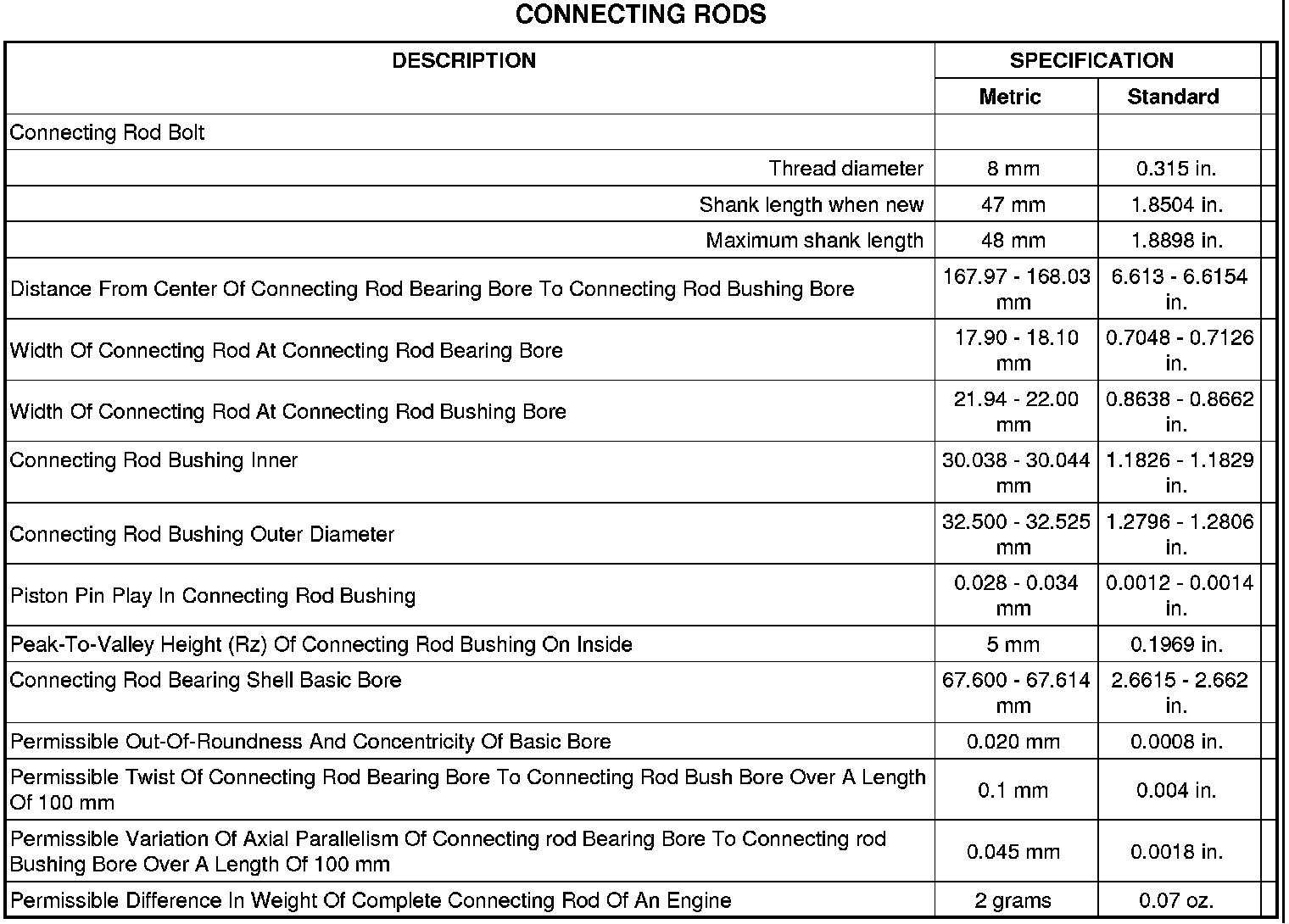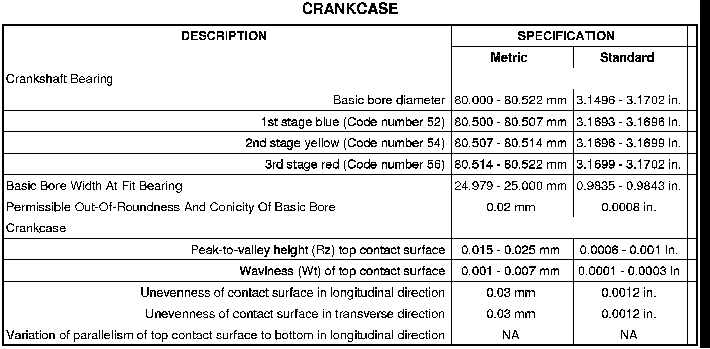 Each color-coded bearing is matched to its respective journal for the best fit possible (select fit). In production, the select fit is obtained by matching the color-coded bearings to grade identification marks on the cylinder block and crankshaft. Letters marked on the cylinder block identify the color of each upper-half main bearing, while letters marked on the front end of the crankshaft indicate the color of each lower-half main bearing. A group of four letters located on the machined surface of the cylinder block, above the engine identification number, identifies the upper-half main bearings installed.