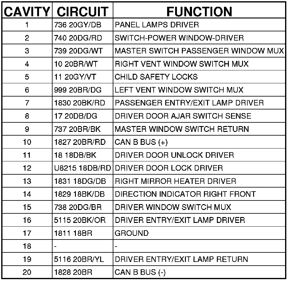Driver Door Module C1 (FT) 20 Way