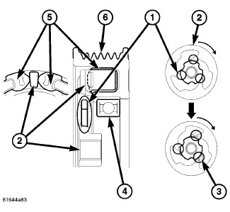The bridges (1) located on the non-serviceable compressor hub (2) are designed to break away in the event of compressor seizure. Examine the bridges for separation or cracks (3). Damage to the bridges are an indication of excessive compressor torque, which is most likely caused by compressor failure.