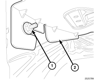 7. Remove lower bolt (1) and battery tray (2).