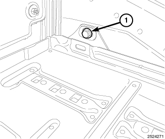 5. Remove the upper battery tray bolt (1).