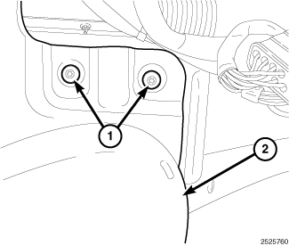 6. Remove the front two bolts (1) securing the battery tray.