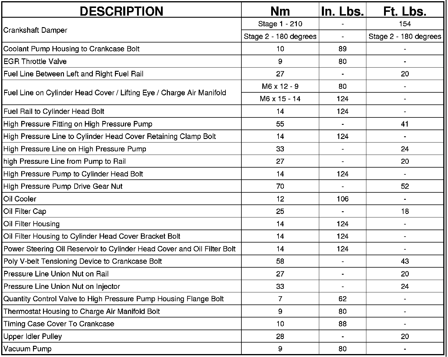 Engine Torque Specifications