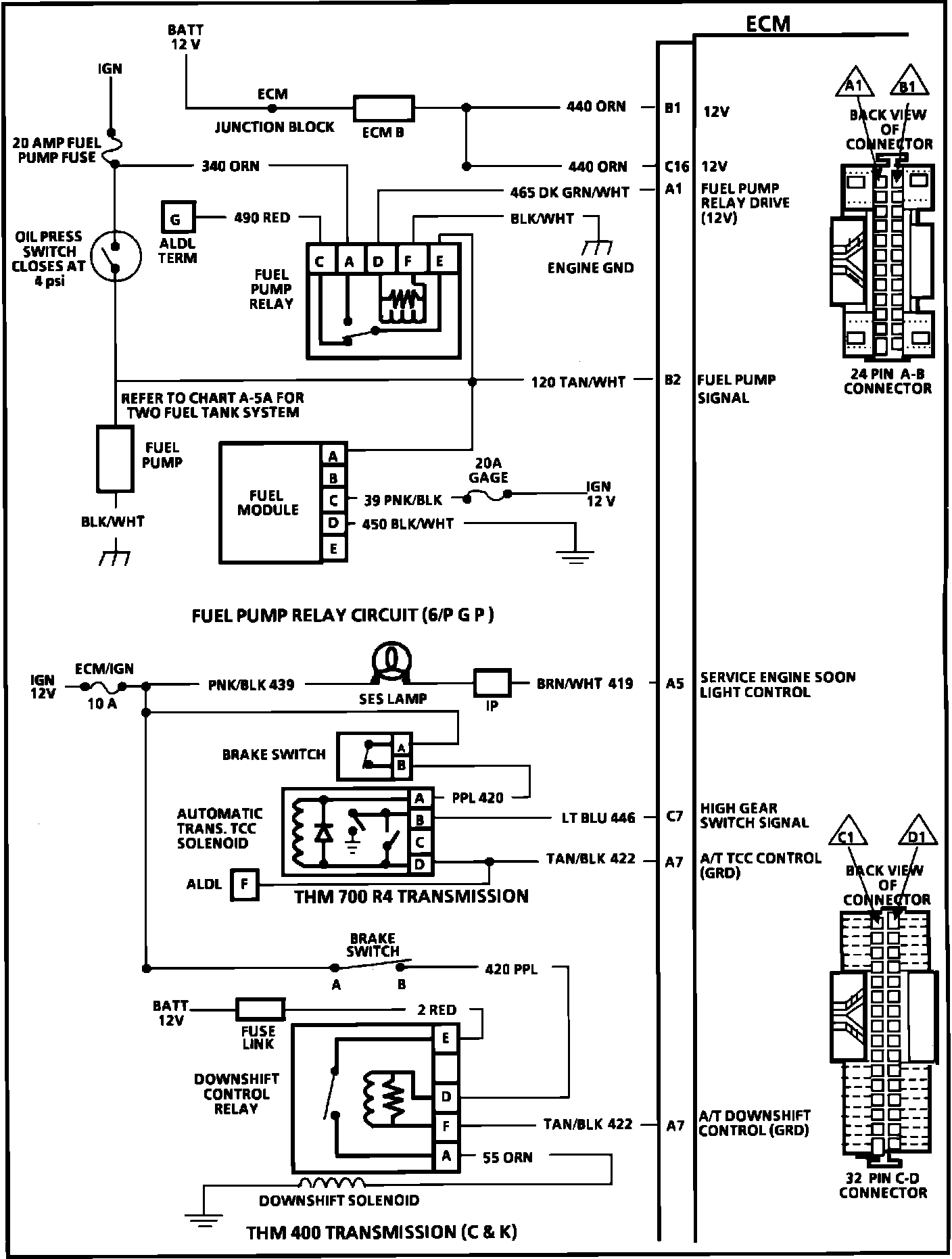 A1 = FUEL PUMP RELAY DRIVE (12V).