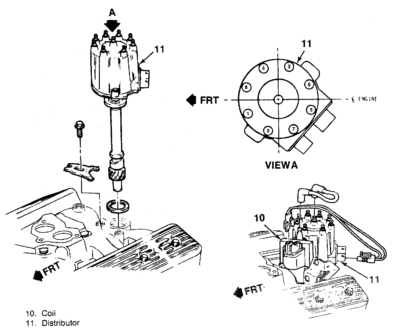The distributor has a separate coil which is mounted on the right side of the engine.