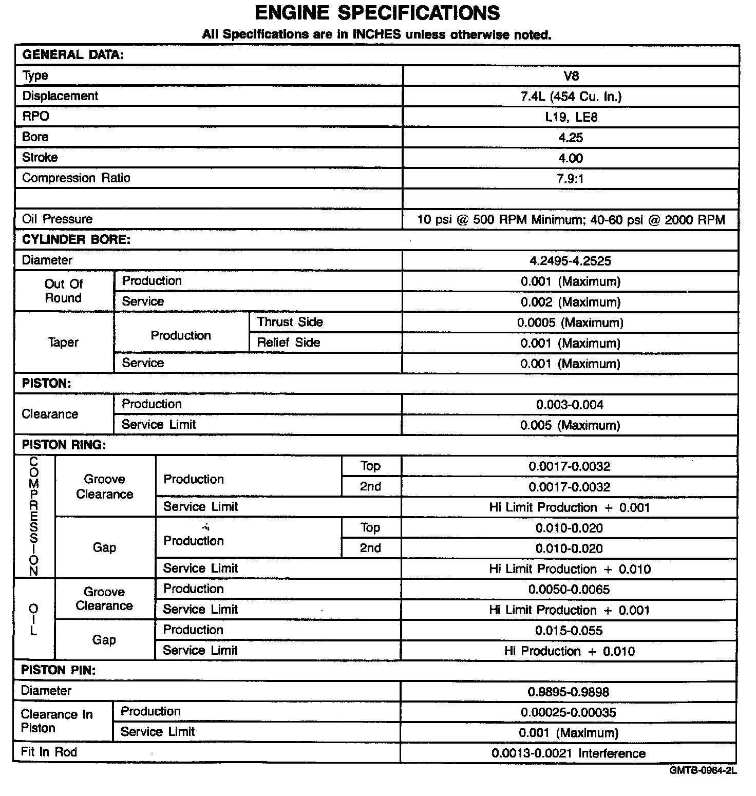 Engine Specifications: