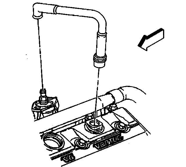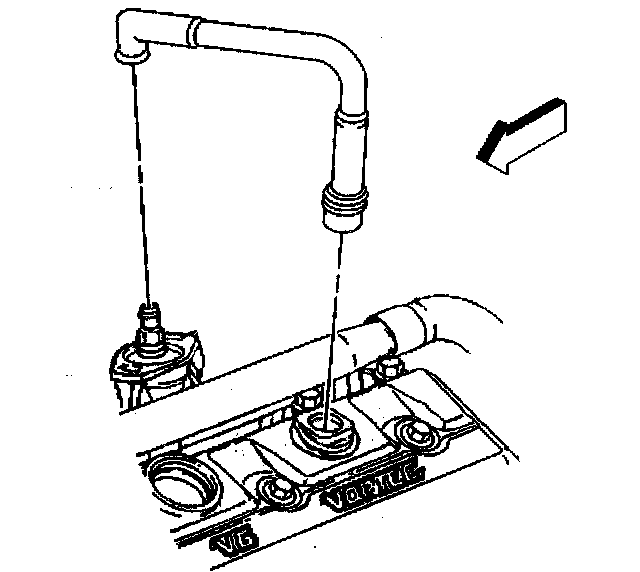 5. Remove the PCV valve hose assembly from the intake manifold and the valve rocker arm cover.