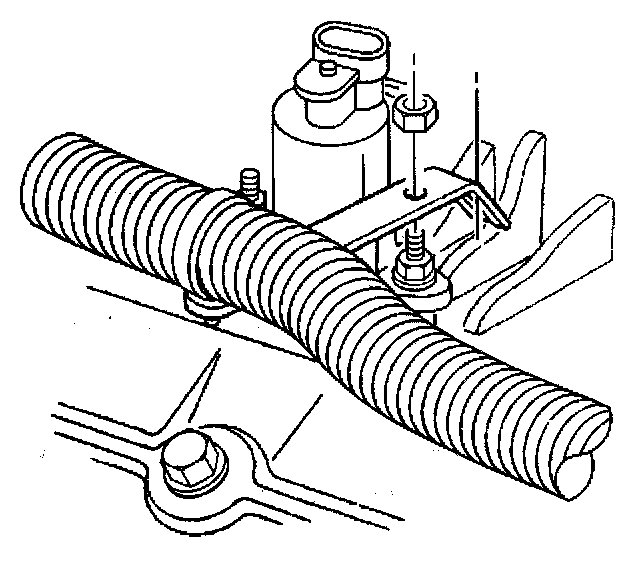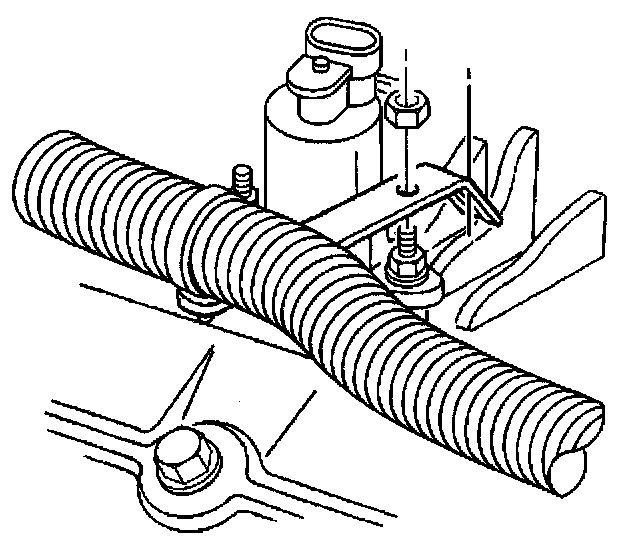19. Install the A/C hose bracket and nut, if equipped to the intake manifold stud.