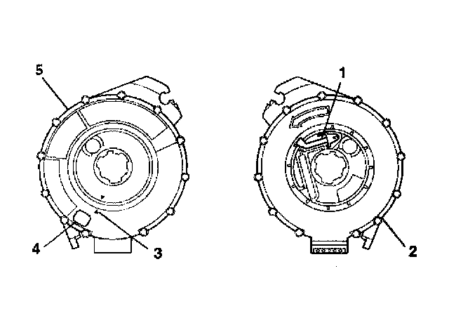 2. If the front (5) of the SIR coil assembly has a centering window (4), and on the back side (2) a spring service lock (1), perform the following steps: