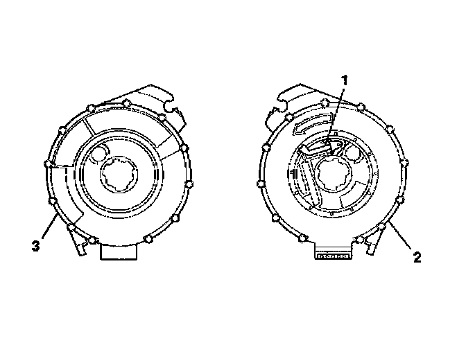 4. If no centering window is present on the front side (3) of the SIR coil assembly, but a spring service lock (1) is on the back side (2), perform the following steps: