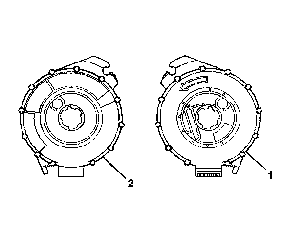 5. For no centering window on the front side (2) of the SIR coil assembly and no spring service lock on the back side (1), perform the following steps:
