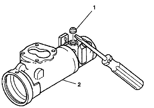 Remove the check valve (1) from the steering gear housing (2) using a small screwdriver.