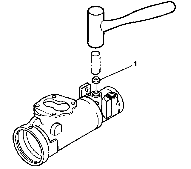 Install the check valve (1) using a 3/8 inch diameter piece of tubing 100 mm (4 inches) long to drive into the steering gear housing (2).